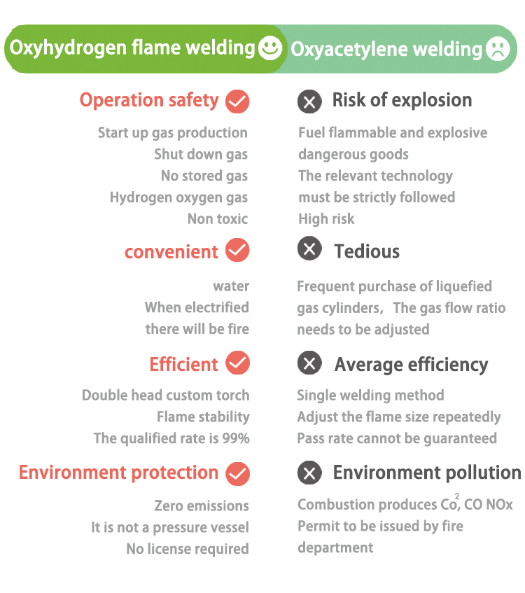 3.Clean. Oxyhydrogen flame burns without Co2, Co and NOx.