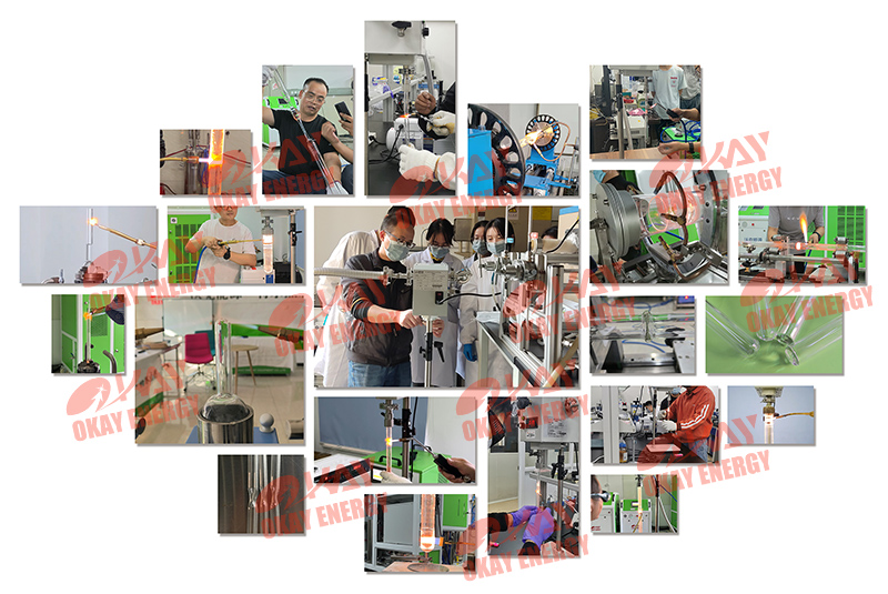 The device is made with high vacuum rotary seal system, high vacuum pipeline, intake port, suction port, vent valve and glass test tube flange. It is used for the vacuum sealing of daily high purity raw materials in university and lab of institution. It could be used in factory to have tube sealing, vacuum sealing of quartz glass tube and vacuum seal of borate glass. The isolation of samples of after-melting of quartz in the mouth of tube and outer air could have effective protection sample that is sensitive to air. Sample could be burned or transported in a long time as well as switching of suitcases after sealing. Quartz tube vacuum sealing machine could provide 1-3 workstation and there could be customization for multiple machines. The whole set include OH series oxyhydrogen generators + quartz vacuum sealing system OK-M320 + vacuum pump